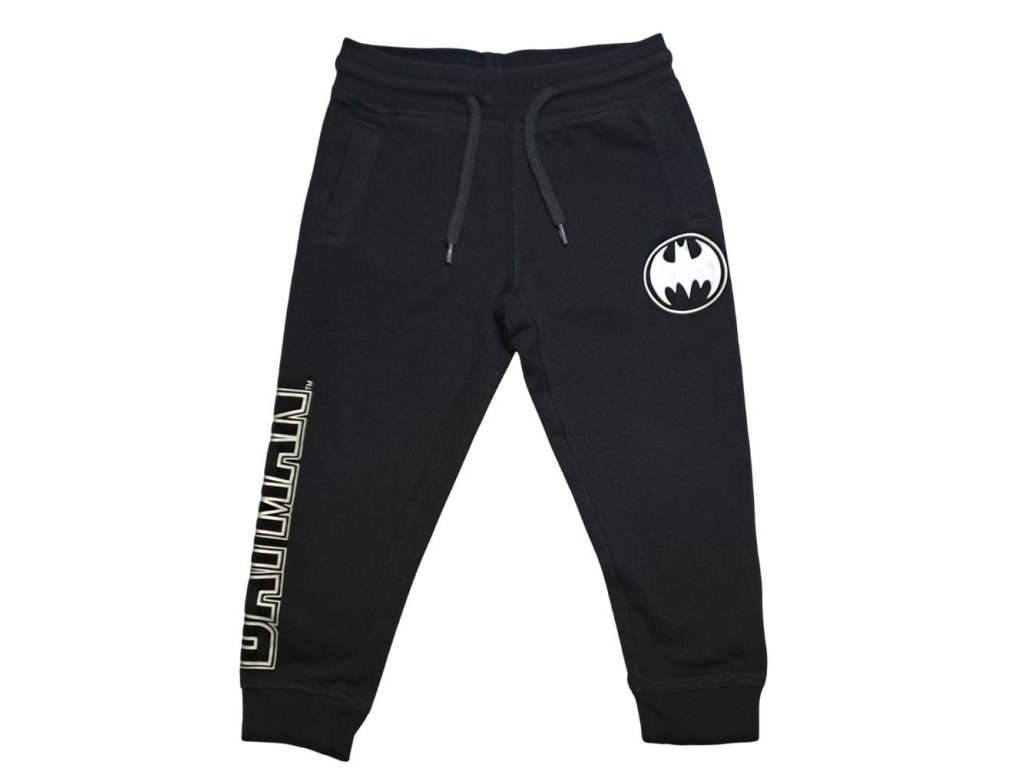 Fekete melegítőnadrág Batman mintával, felirattal.