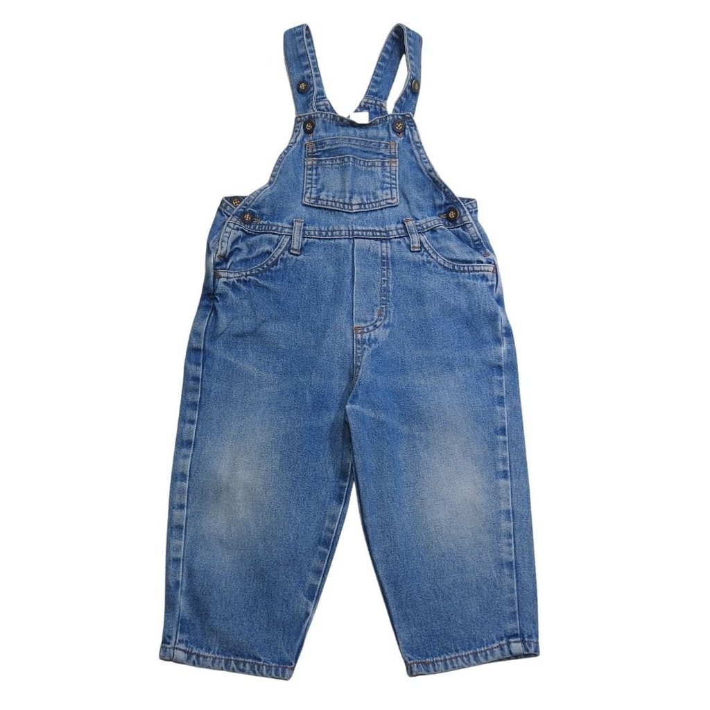Kék, koptatott stílusú kertészfarmer.