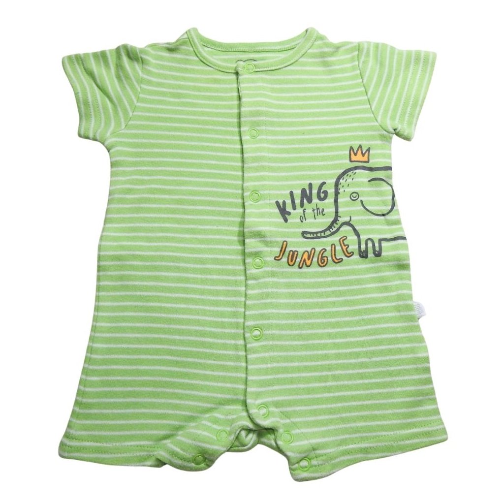 Zöld-fehér csíkos, rövid ujjú pamut napozó elefántos mintával.