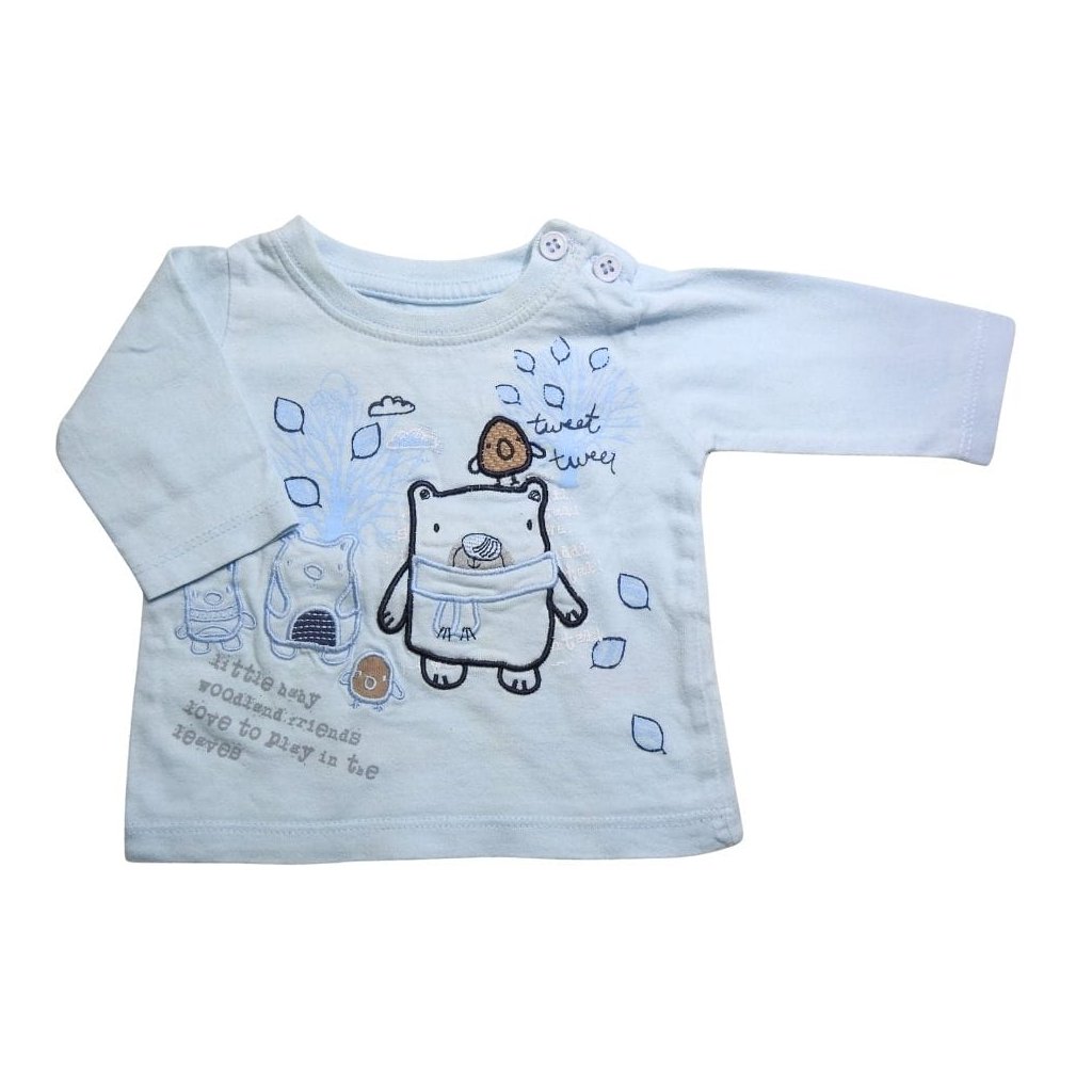 Világoskék, hosszú ujjú pamut póló macis mintával.