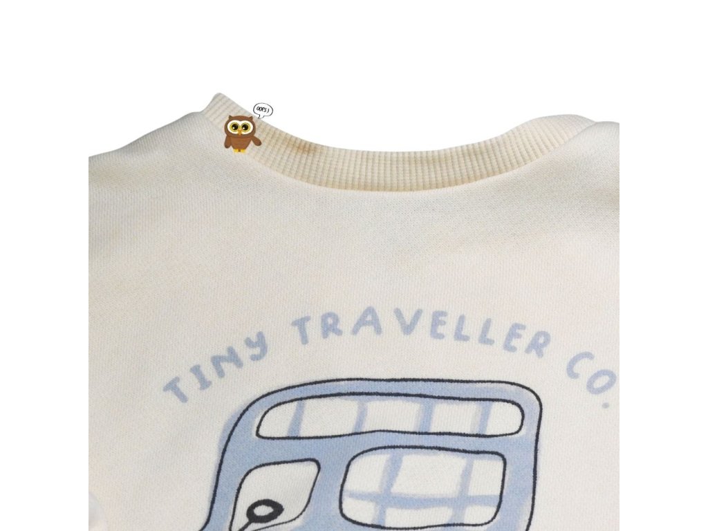 Krém színű pulóver buszos mintával.