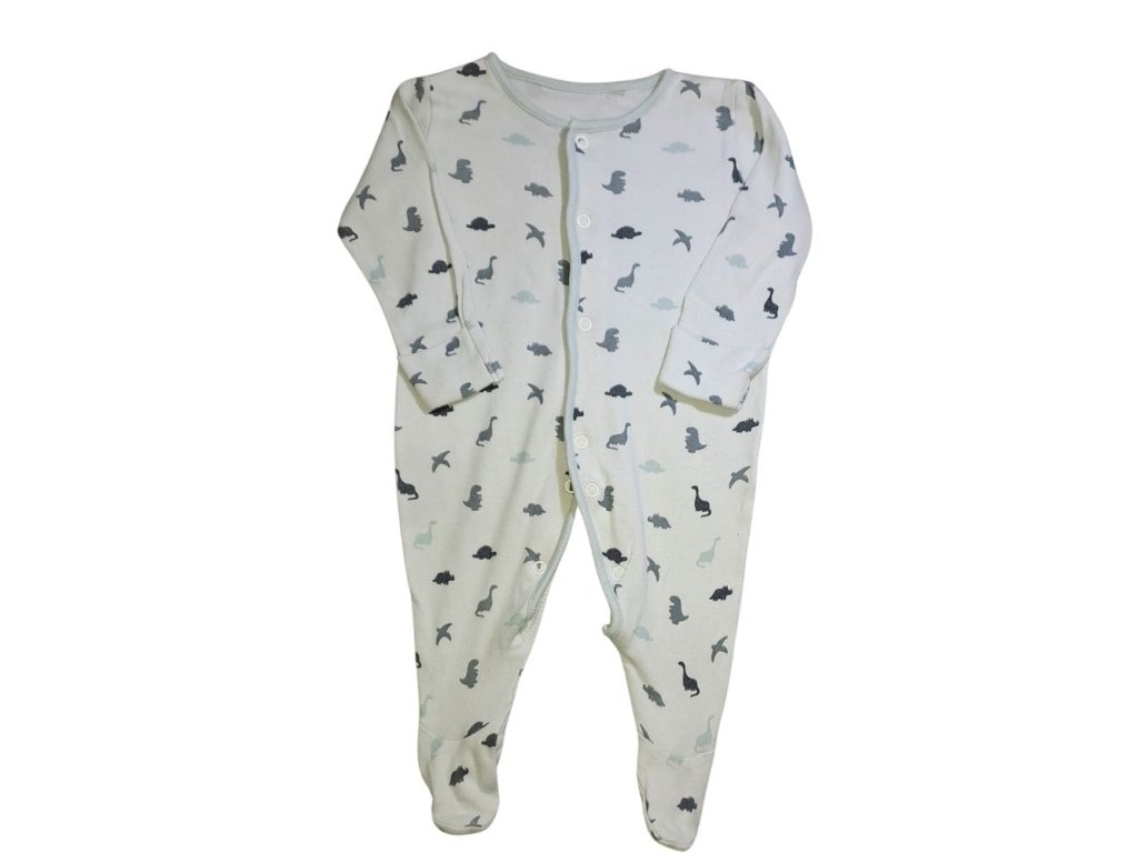 A ruhadarabok fehér alapszínűek, viszont a rugdalózó inkább szürkés, sötétebb árnyalatú.