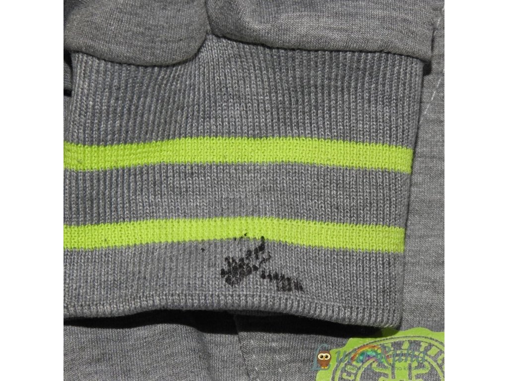Tökéletlensége, hogy a jobb ujján található egy pici lyuk, illetve annak végén és a minta között fekete folt.