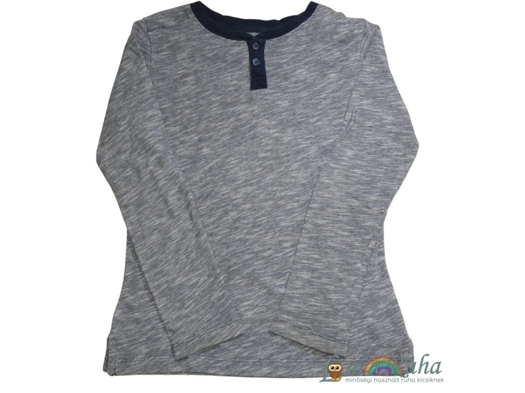 Sötétkék csíkos, hosszú ujjú pamut póló gombos nyakkal.