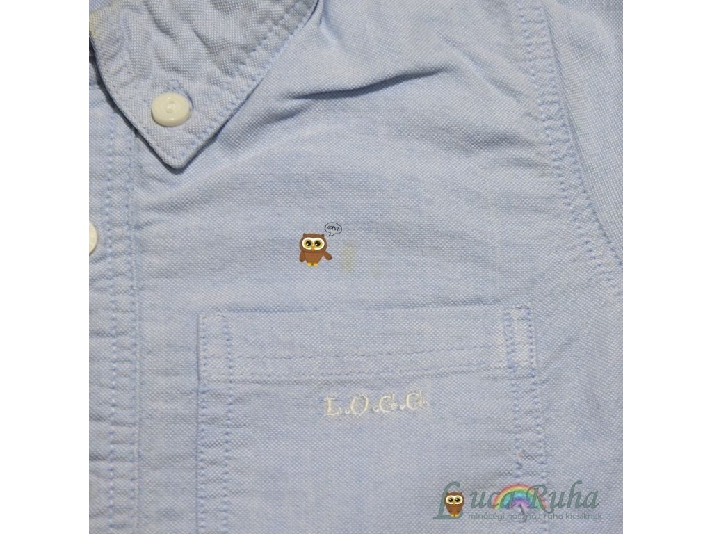 Világoskék, hosszú ujjú pamut ing.