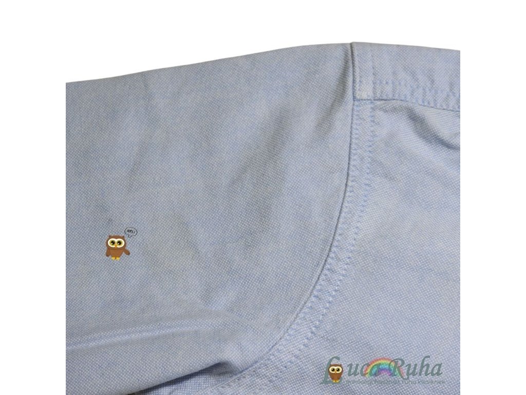 Tökéletlensége, hogy a mellzseb felett, a gallérnál és a jobb karján is található halványabb folt.