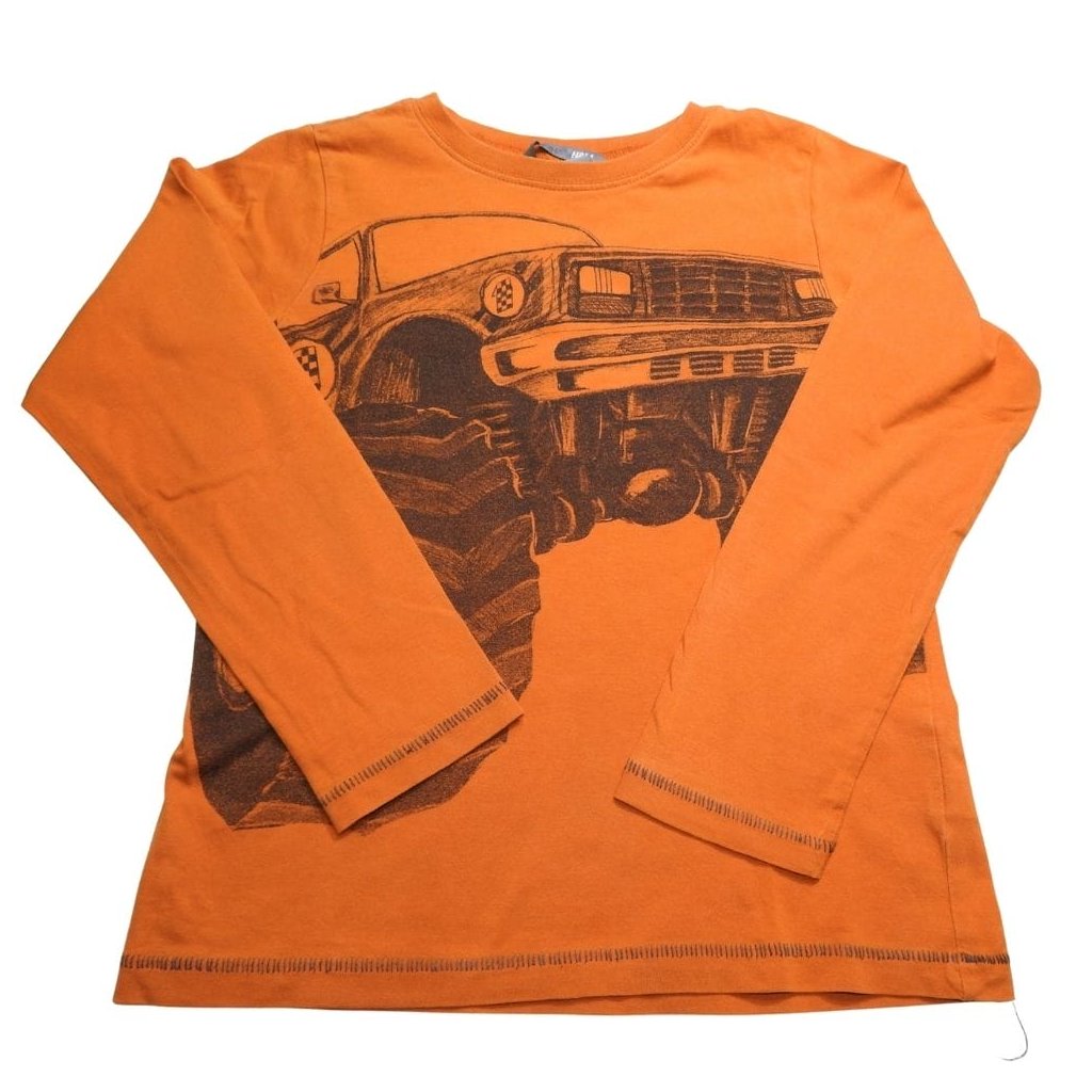 Narancs színű, hosszú ujjú pamut póló Monster, autós mintával.