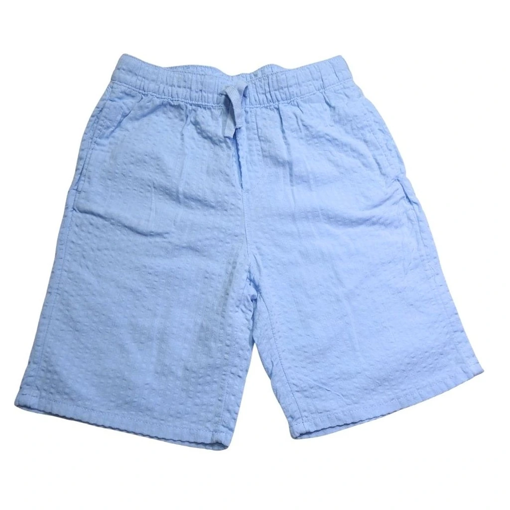 Világoskék, kreppelt pamutvászon rövidnadrág.