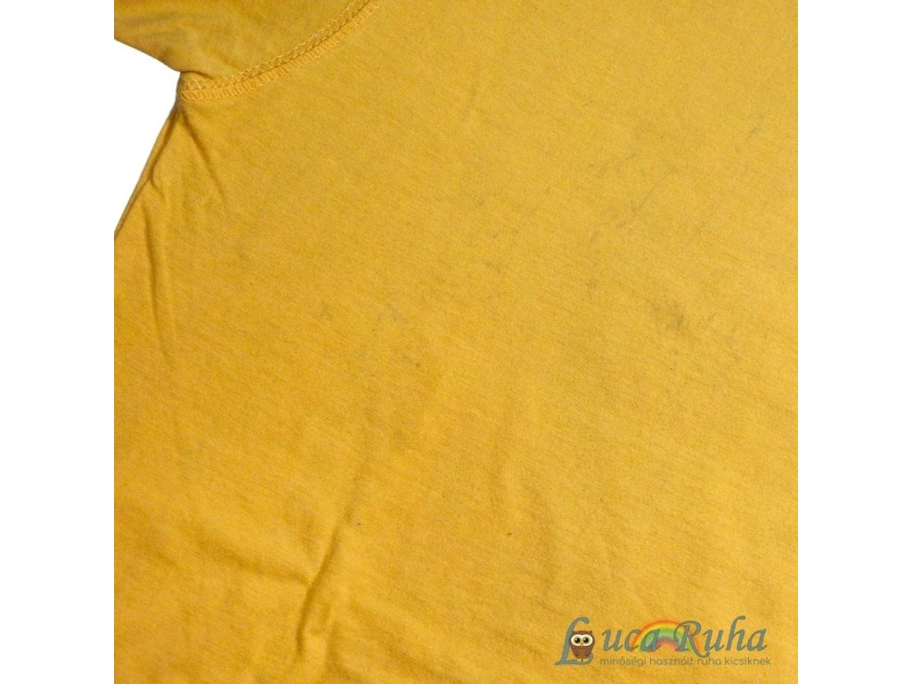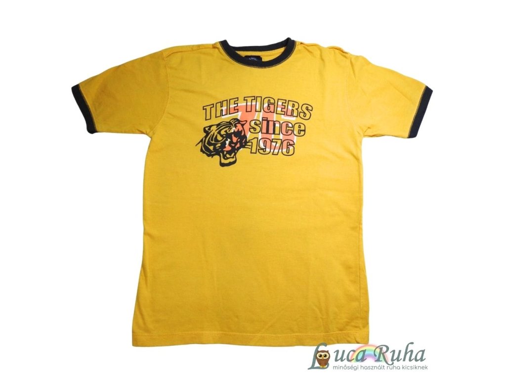 Sárga, rövid ujjú póló tigrises mintával, felirattal.