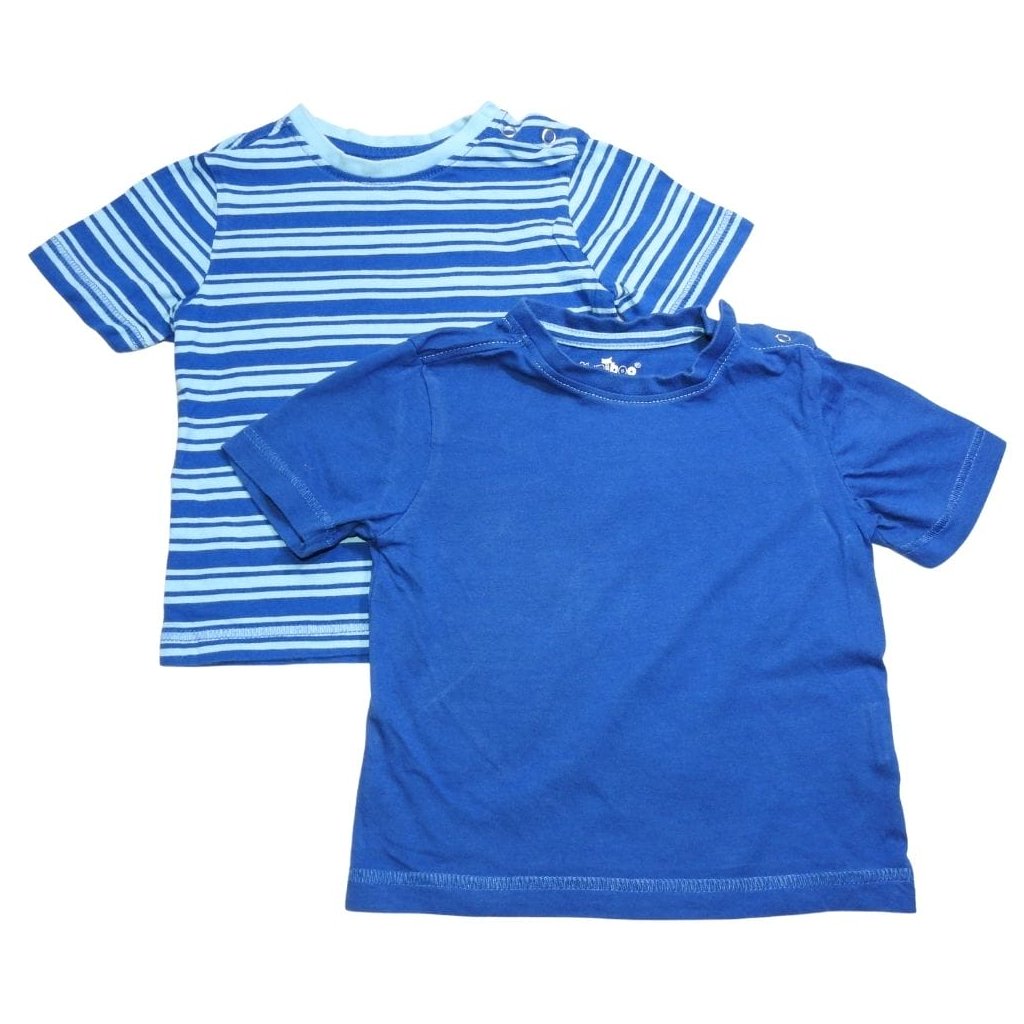 Kék, és kék csíkos rövid ujjú, pamut pólókból álló szett.