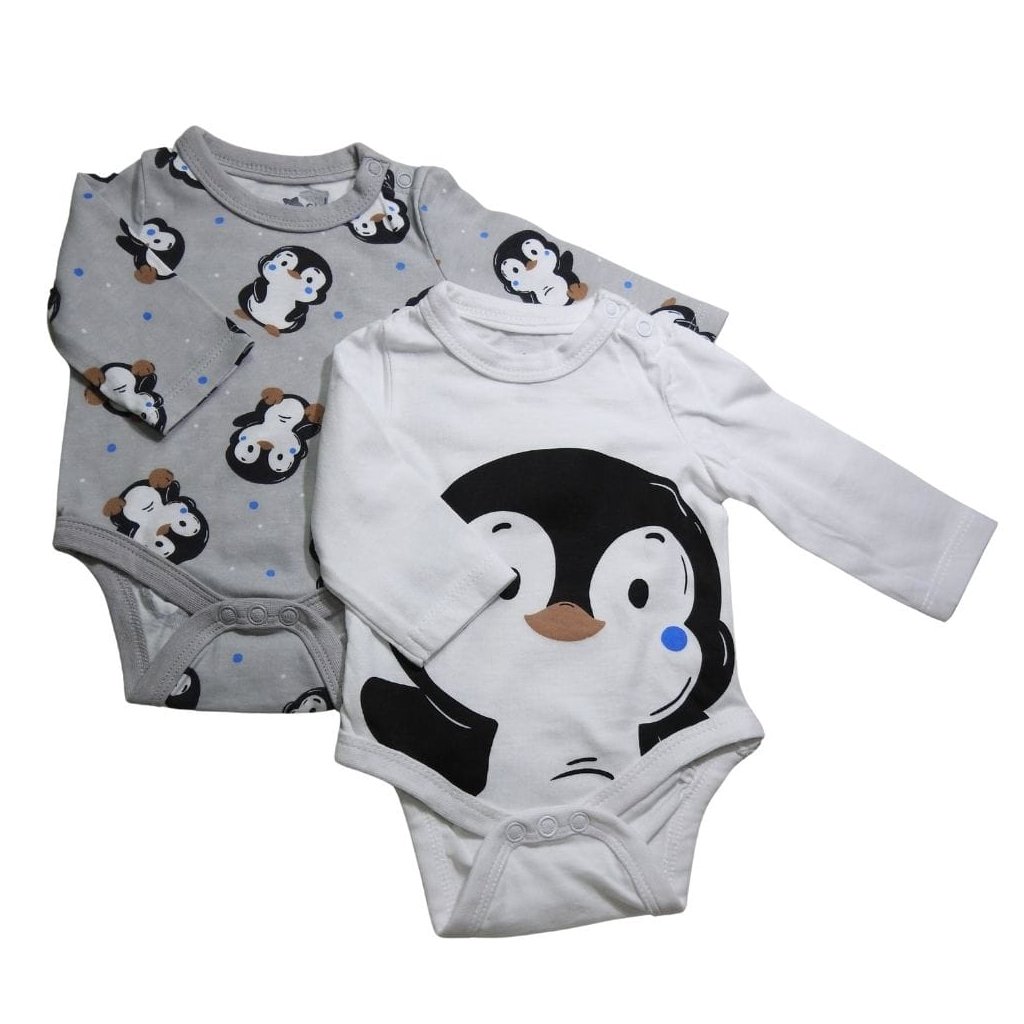 2 db hosszú ujjú pamut body pingvines mintával.