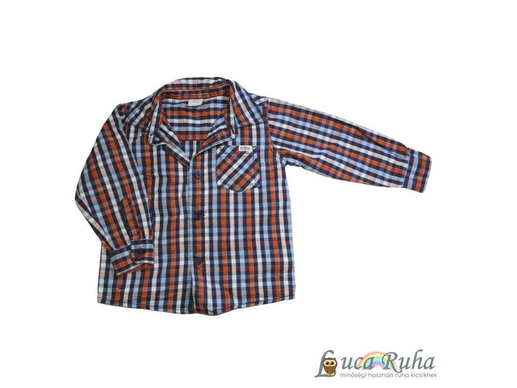 Kék-narancs kockás, hosszú ujjú pamut ing.