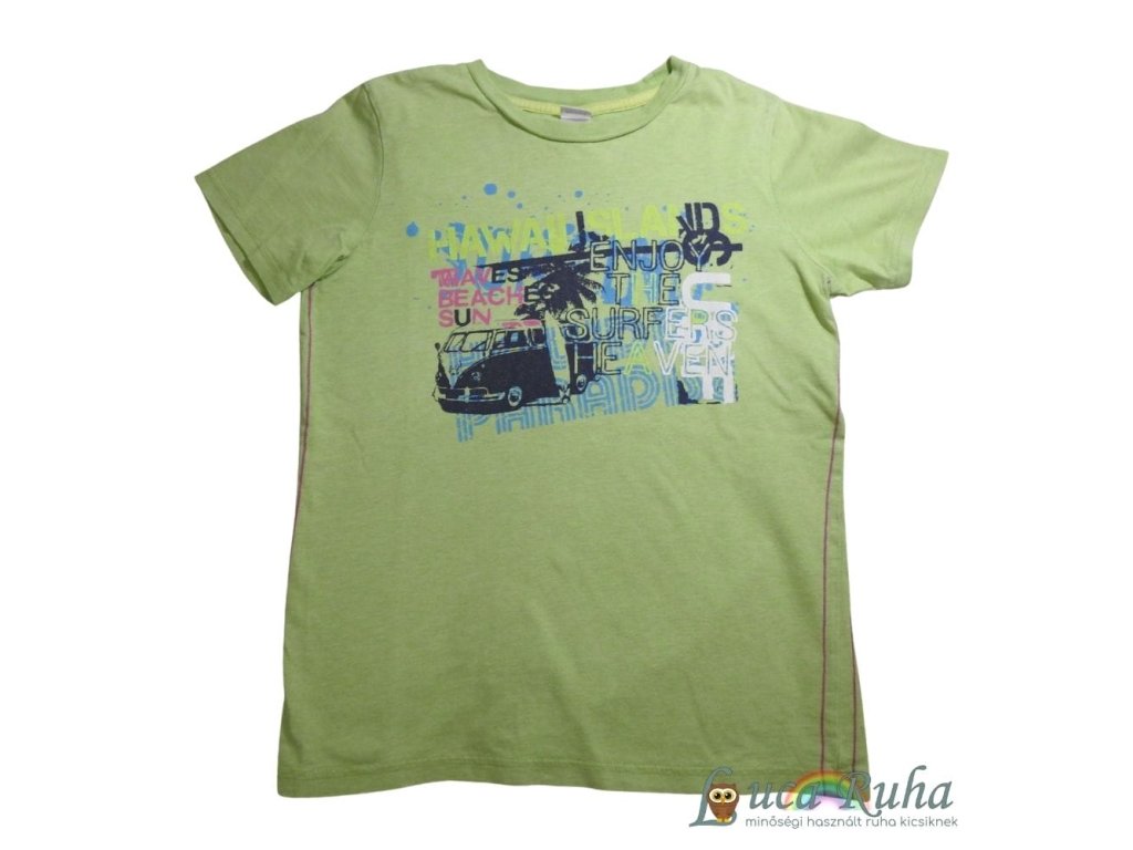 Világoszöld, rövid ujjú pamut póló nyomott mintával.