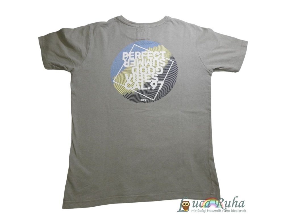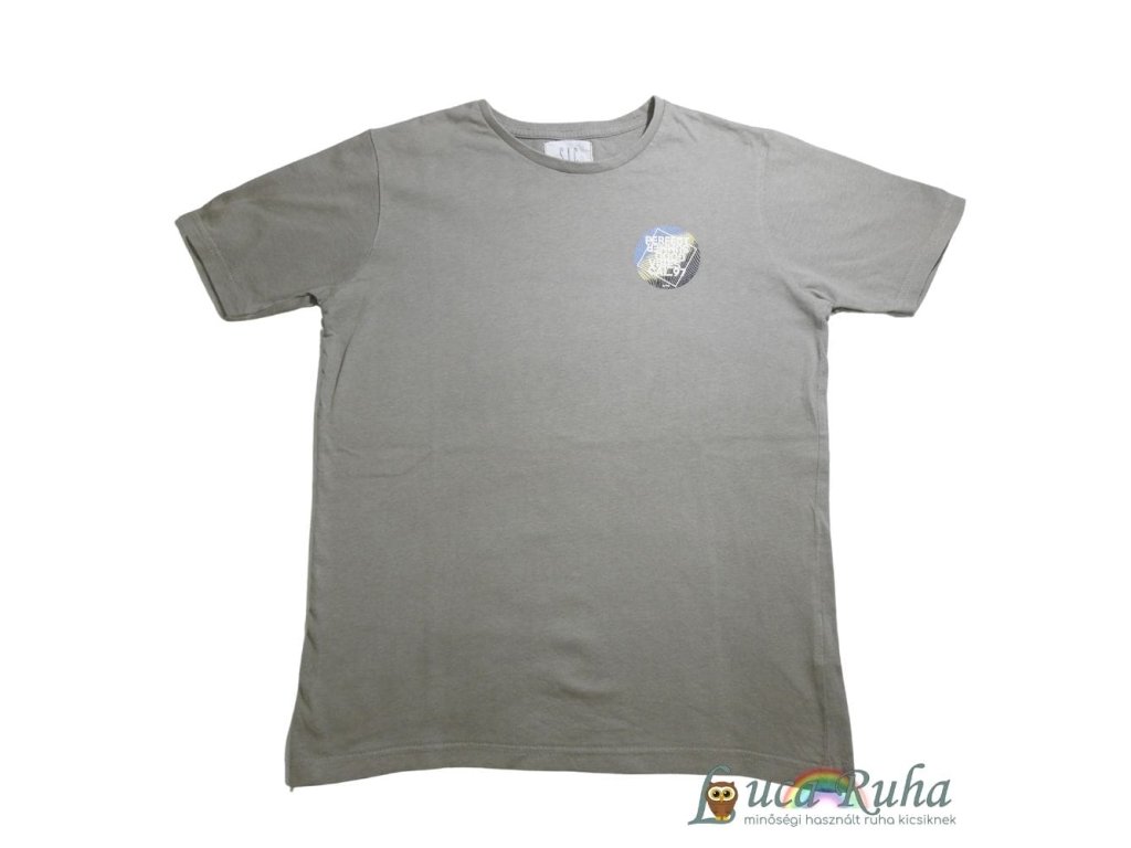 Khaki, rövid ujjú pamut póló elől-hátul nyomott mintával.