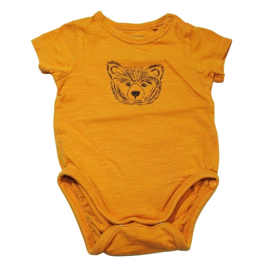 Narancssárga, rövid ujjú pamut body macis mintával.
