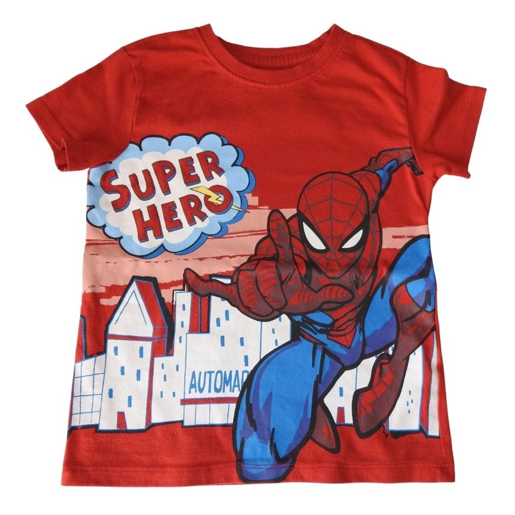 Piros, rövid ujjú pamut póló Pókember (Spiderman) mintával.