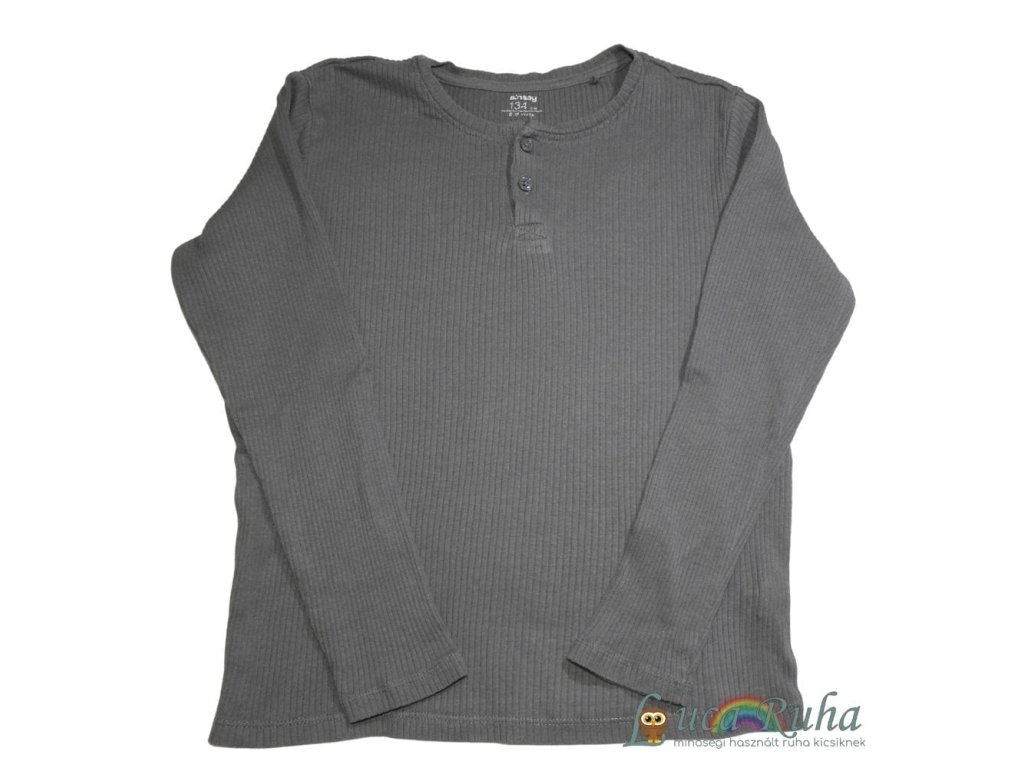 Sötétszürke, hosszú ujjú, bordázott anyagú póló gombos nyakkal.