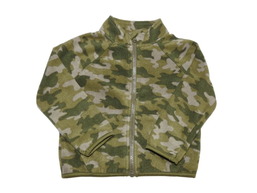 Zöld terepmintás polár pulóver cipzáras záródással.