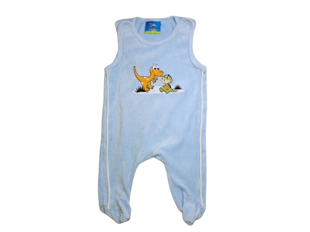 Világoskék, ujjatlan plüss rugdalózó hímzett mintával.