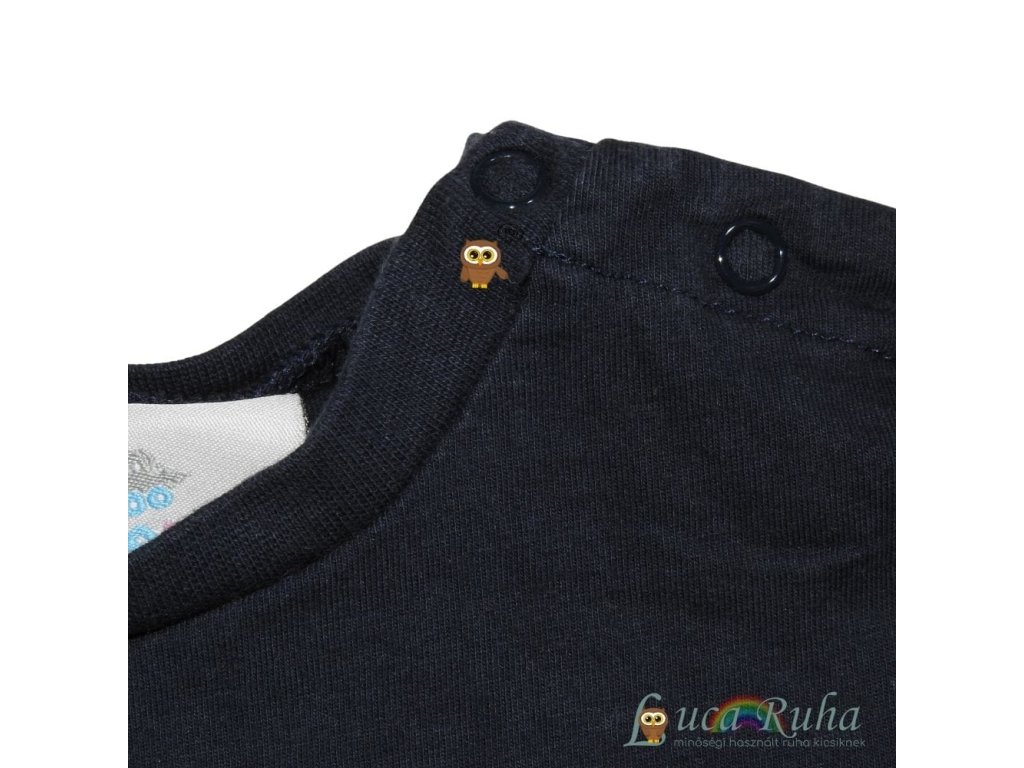 Sötétkék, hosszú ujjú pamut póló tűzoltós mintával.
