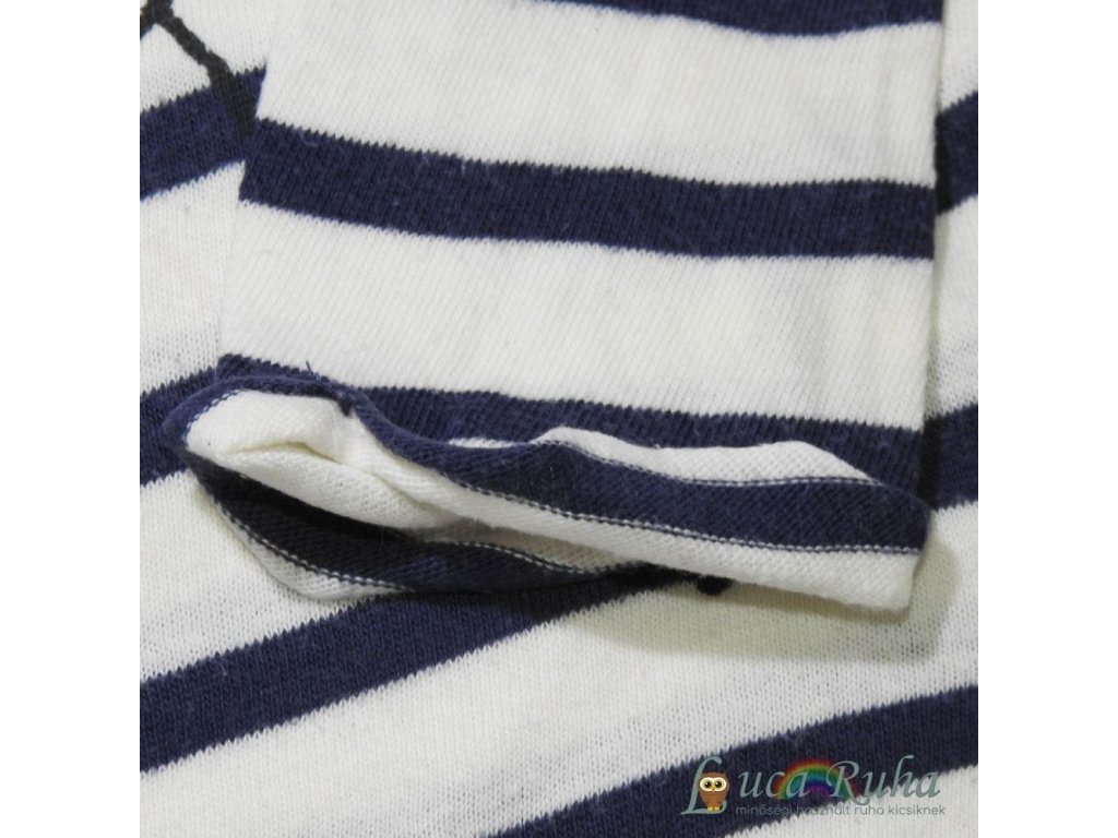 Fehér-sötétkék csíkos, hosszú ujjú pamut póló mintával.