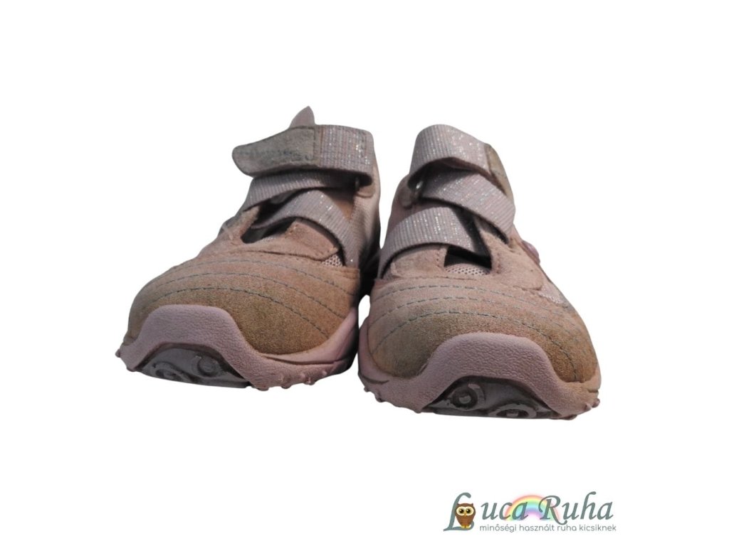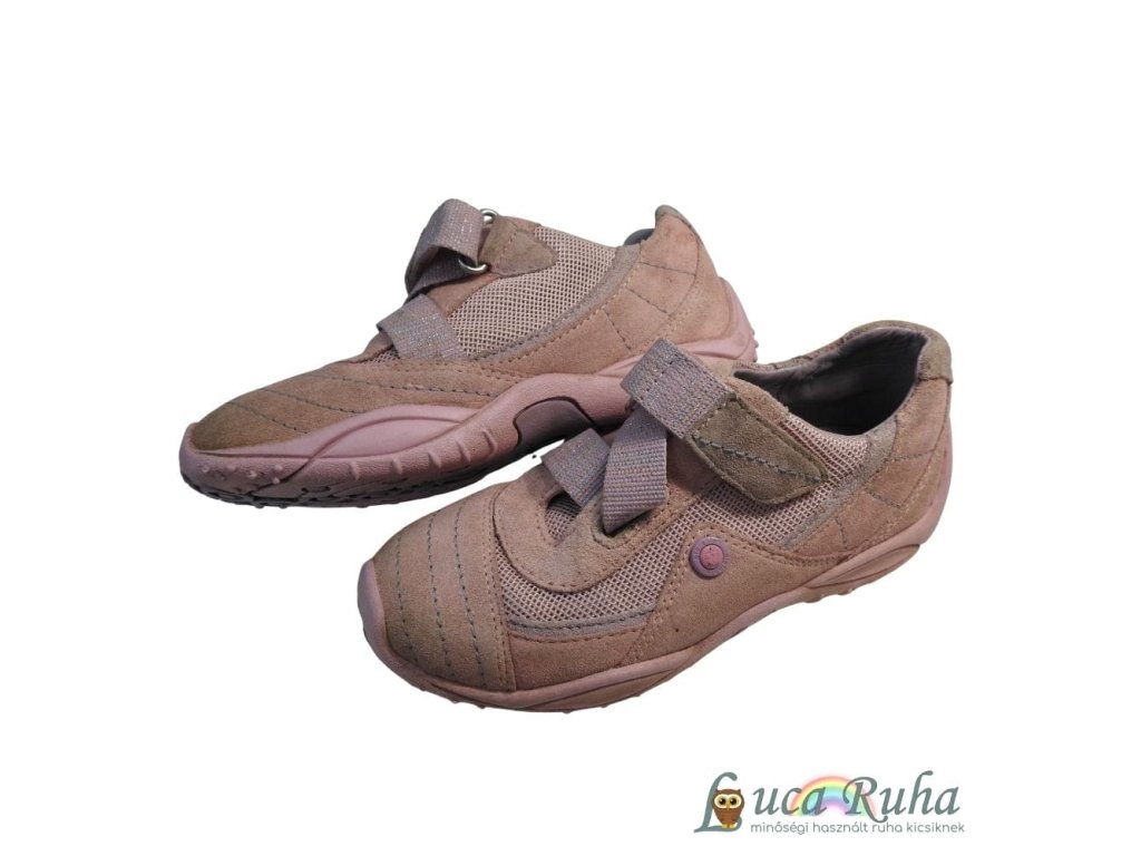 Rózsaszín sportcipő tépőzárral, a képeken látható állapotban.