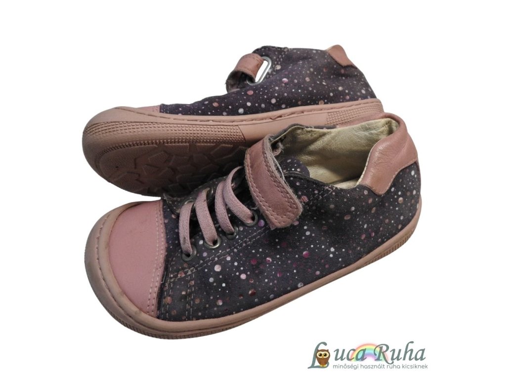 Rózsaszín-lila mezítlábas bőr cipő a képeken látható állapotban.