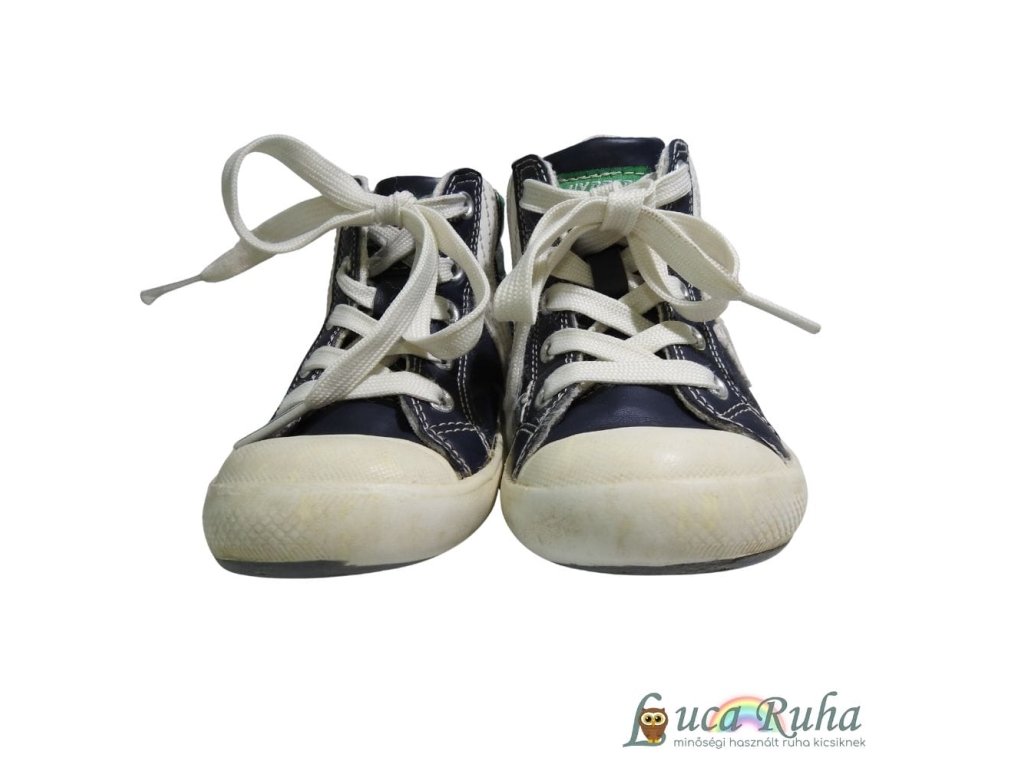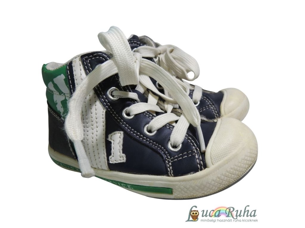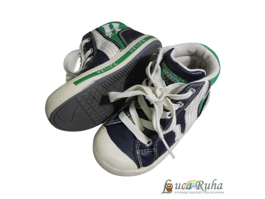 Sötétkék magasszárú sneaker zöld-fehér részletekkel, a képeken látható állapotban.