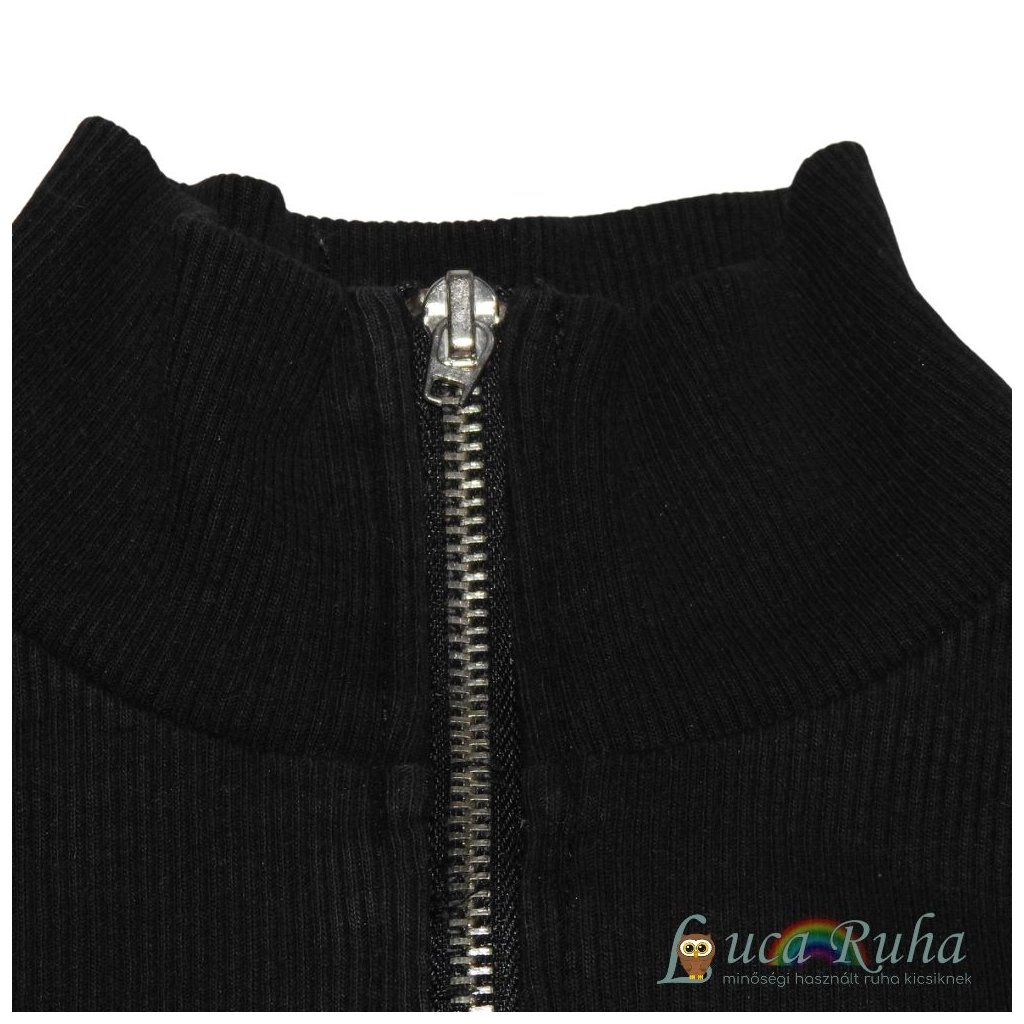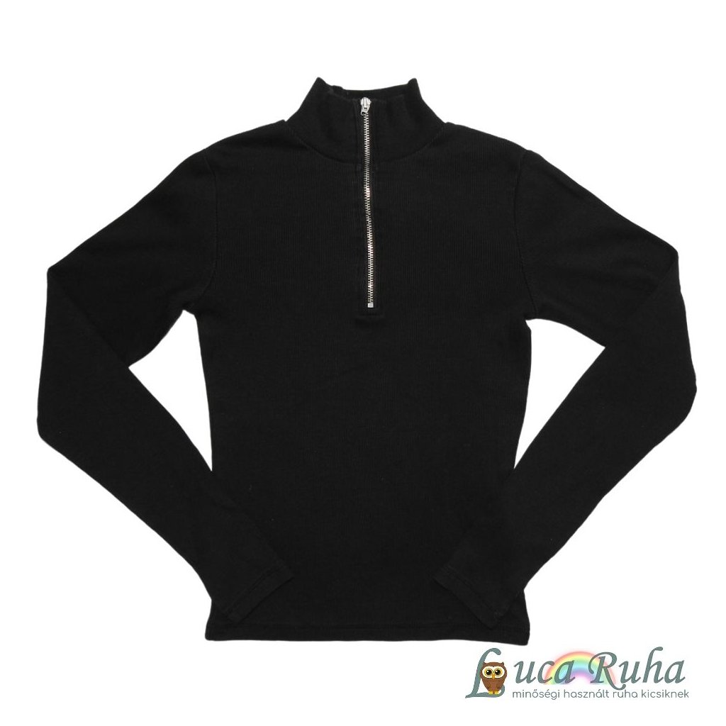 Fekete, gépi kötött női hosszú ujjú felső, nyakánál cipzárral.