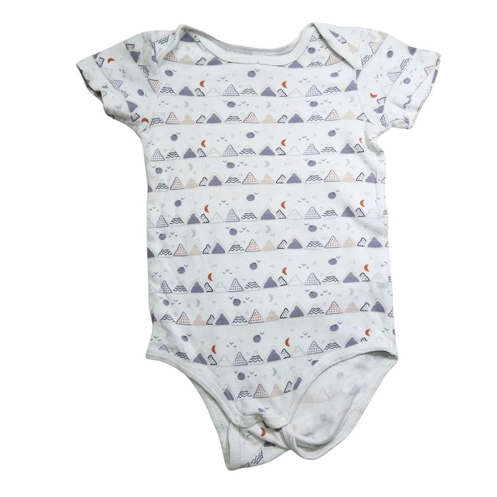 Fehér, rövid ujjú, bio pamut, mintás body.