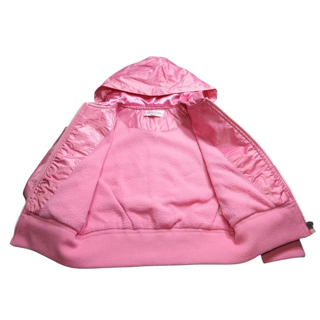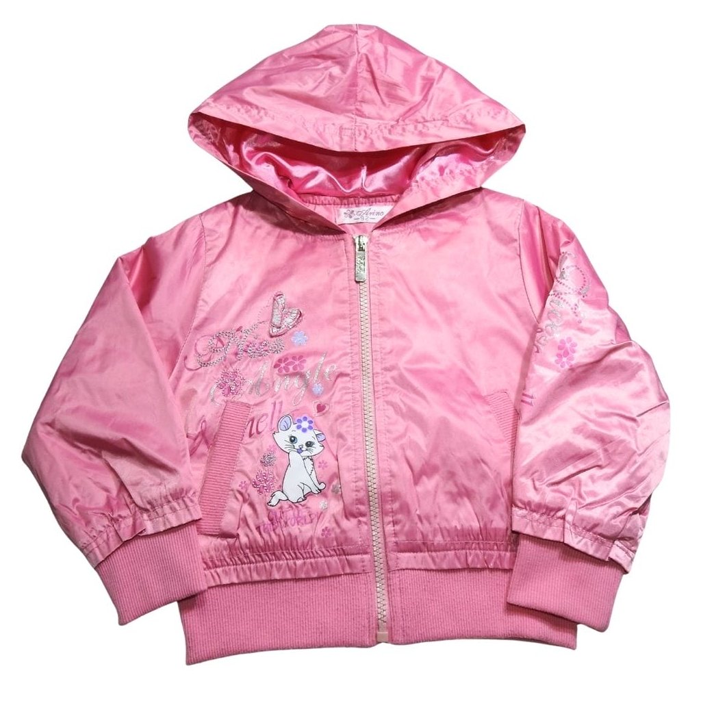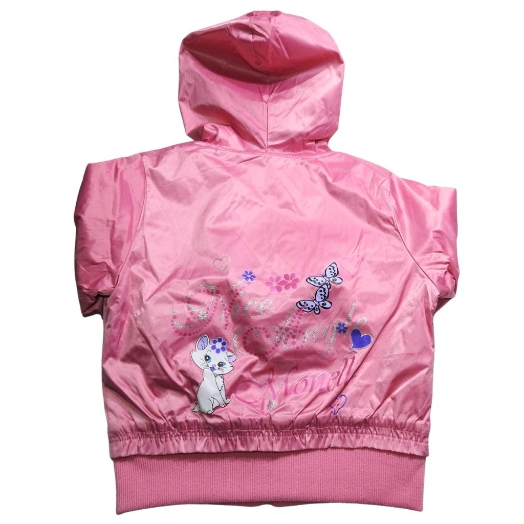 Pink dzseki, polár béléssel, kapucnival, elől-hátul Marie cicás mintázattal, csillámokkal.