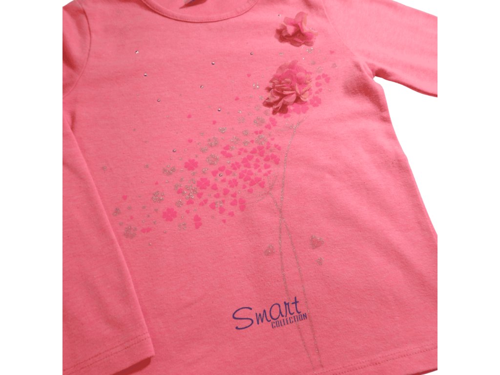 Pink, hosszú ujjú felső csillámos, virágos mintával.
