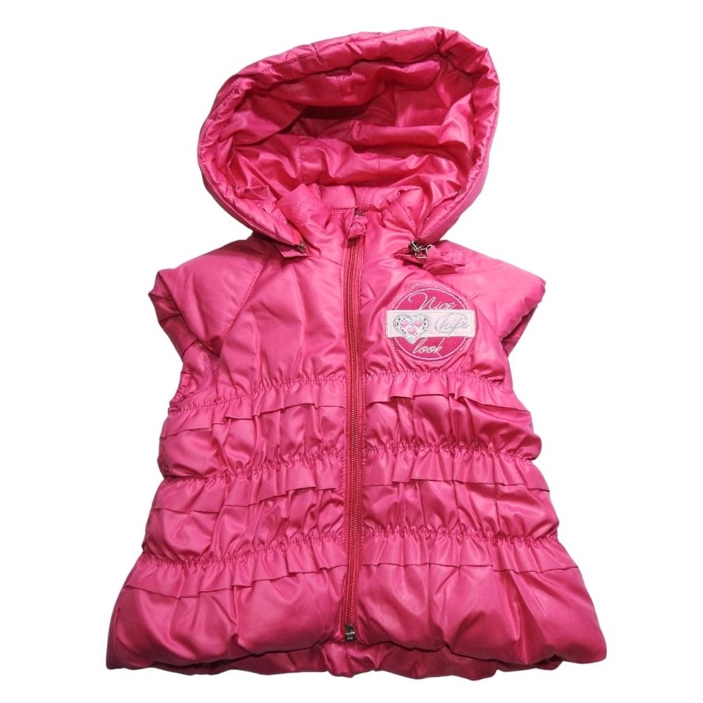 Pink, fodrozott, pufi mellény, lecipzározható kapucnival.