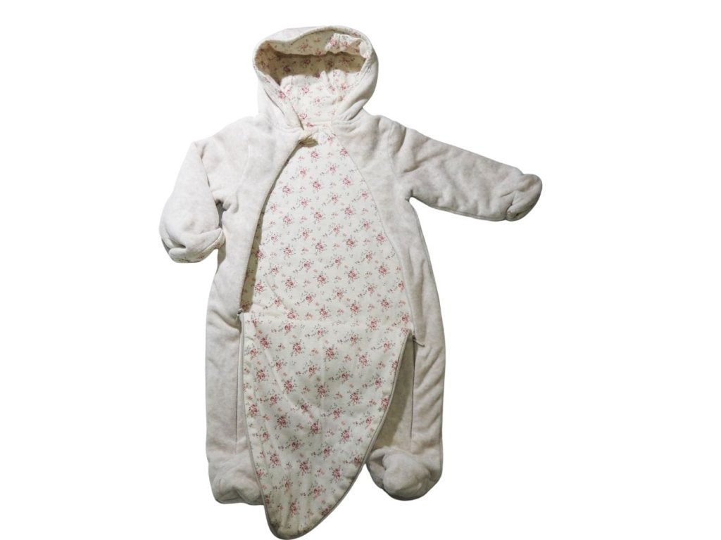 Világos bézs, plüss átmeneti, kora téli overál pamut béléssel, hímzett nyuszis, baglyos mintával.