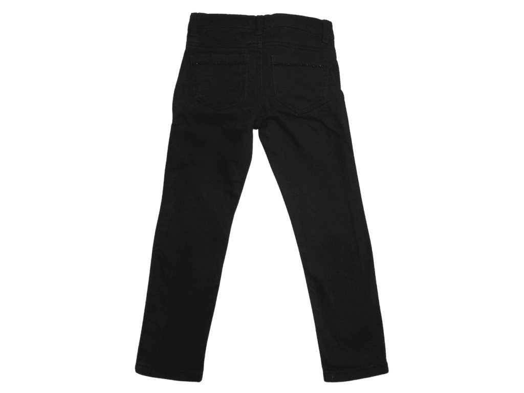 Fekete hosszúnadrág állítható derékbőséggel, zsebeinél strasszokkal díszített.