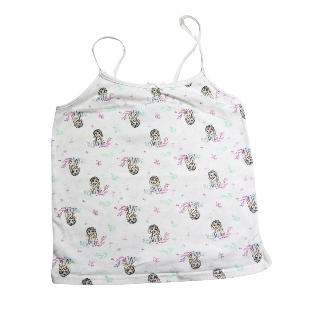 Fehér, állítható spagetti pántos pamut trikó a Jégvarázs c. mese Elza karakterének mintázatával.