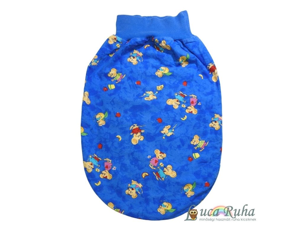 Kék hálózsák újszülöttek részére, egeres mintával.