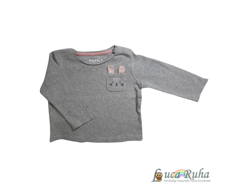 Szürke, bordázott anyagú, hosszú ujjú felső mellzsebbel, egeres mintával.