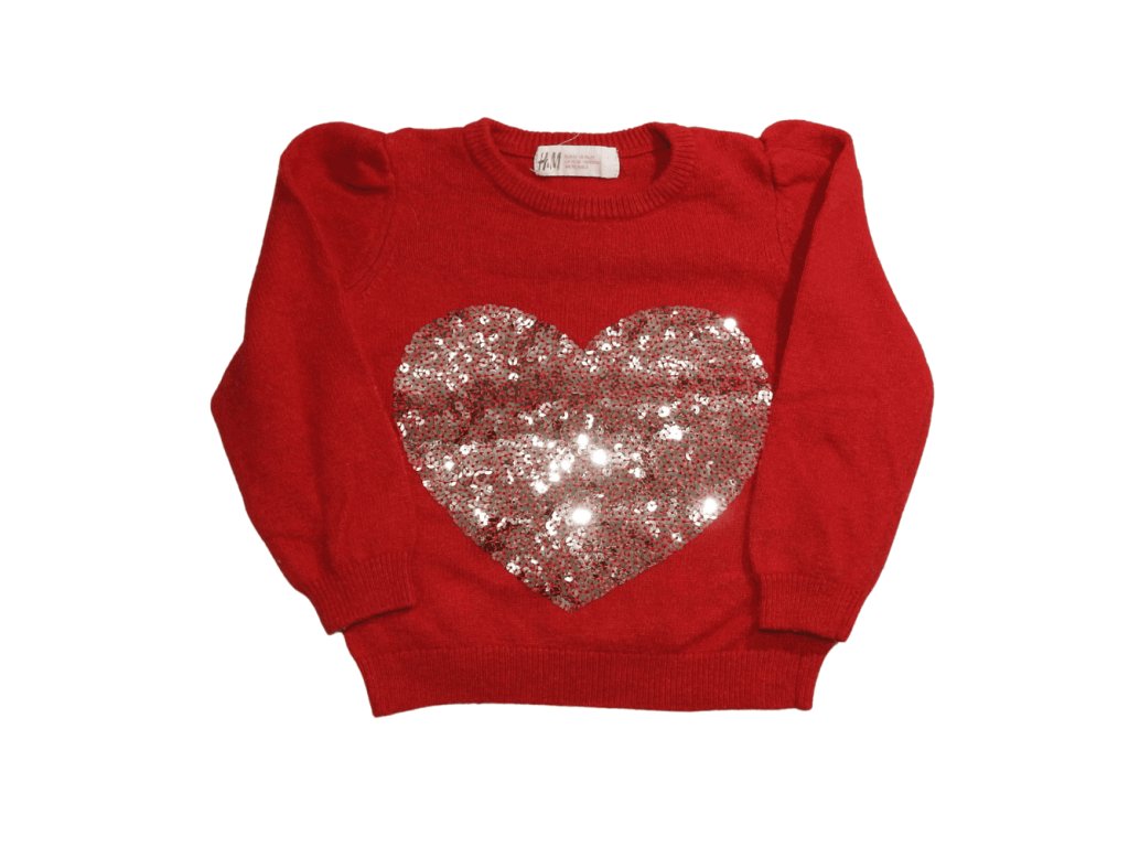 H&M piros, flitteres pulóver - 92