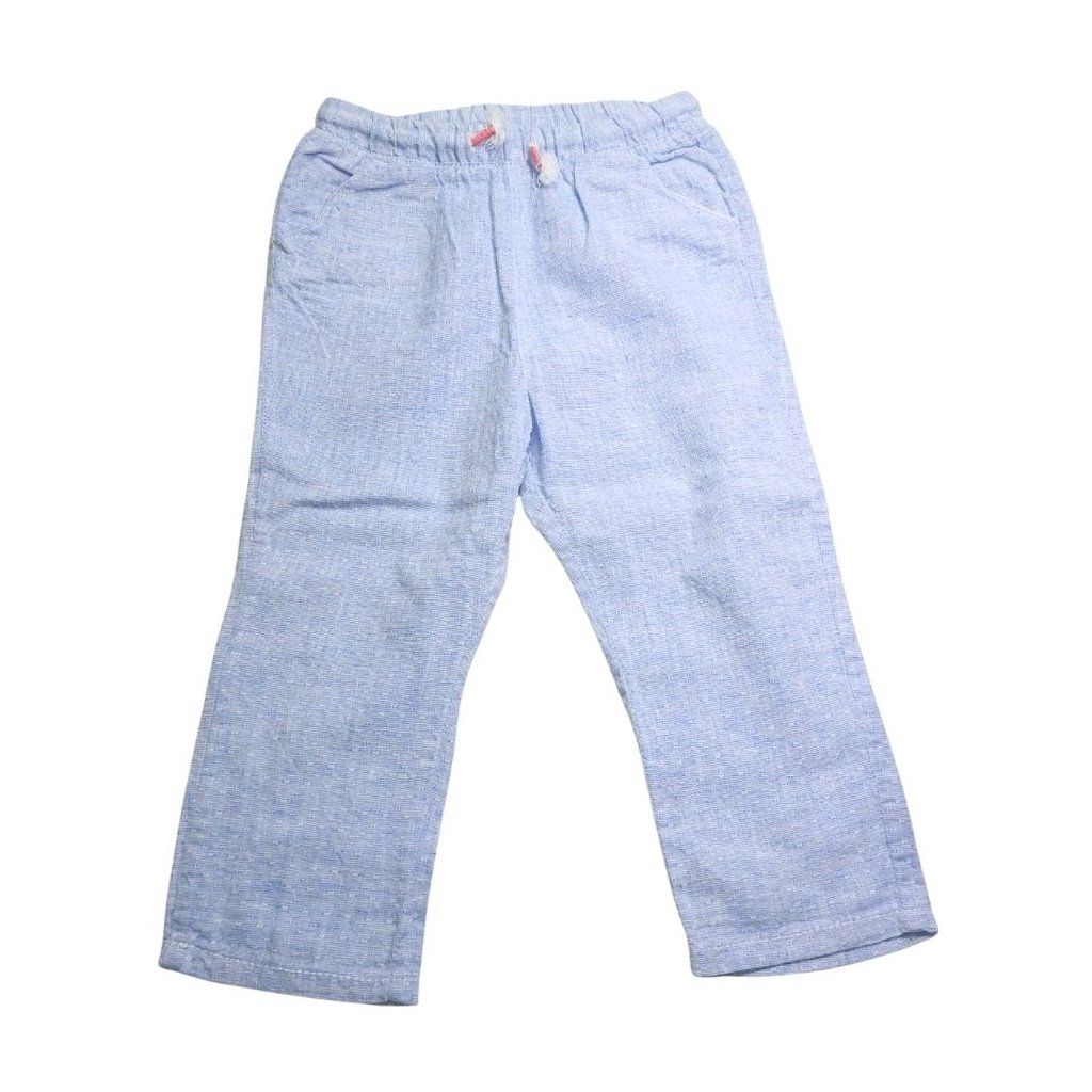 Világoskék melírozott, lenvászon nadrág megkötővel.