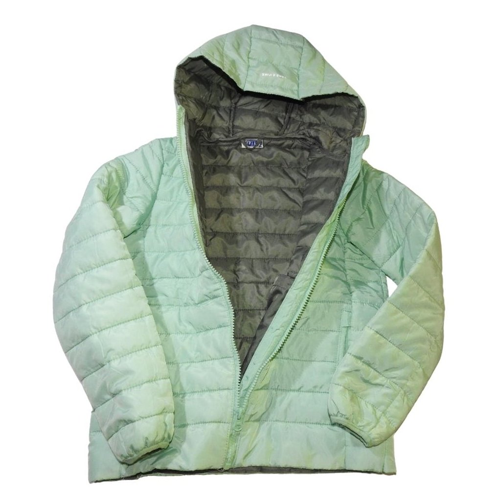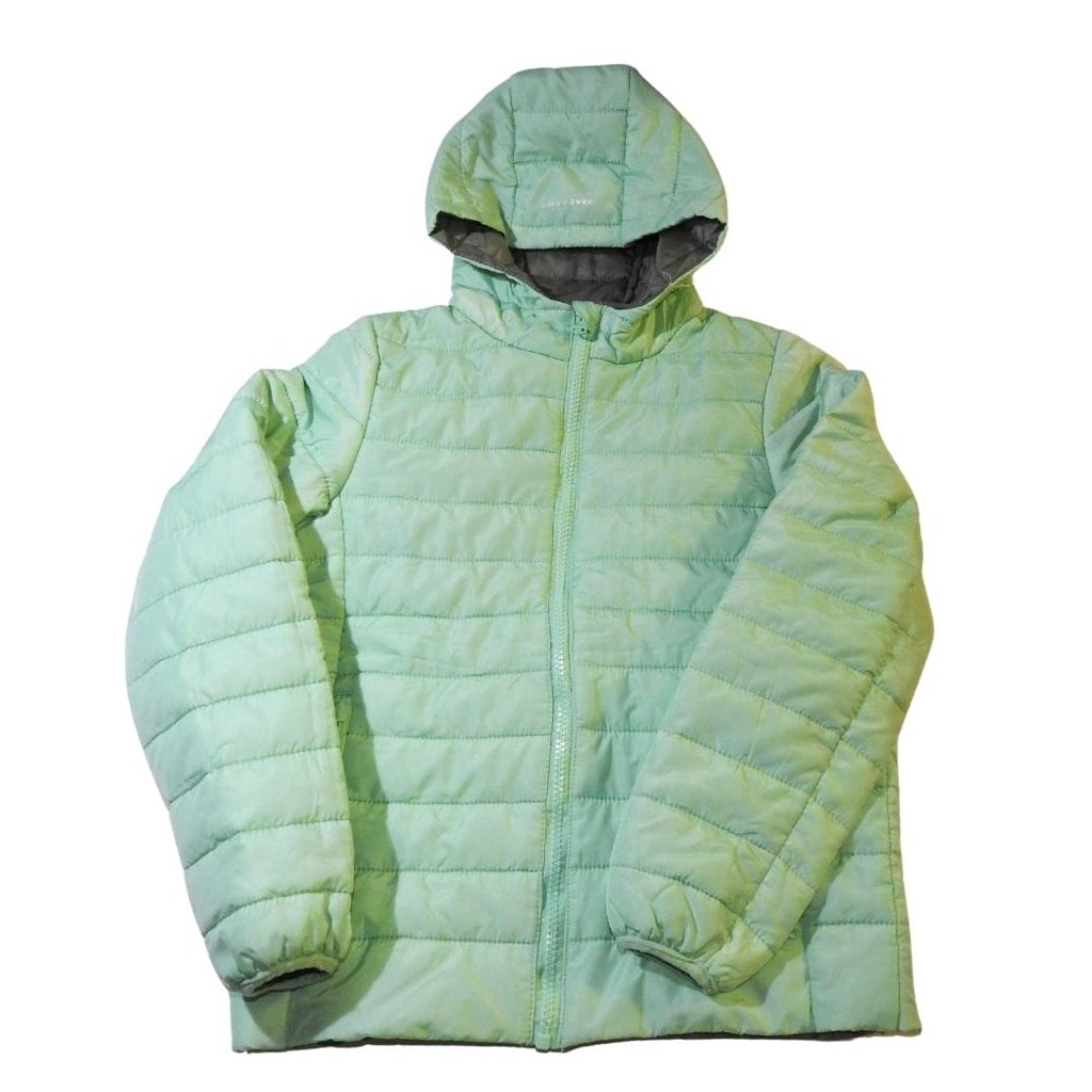 Mentazöld színű, steppelt, pufi, átmeneti dzseki, kabát kapucnival.