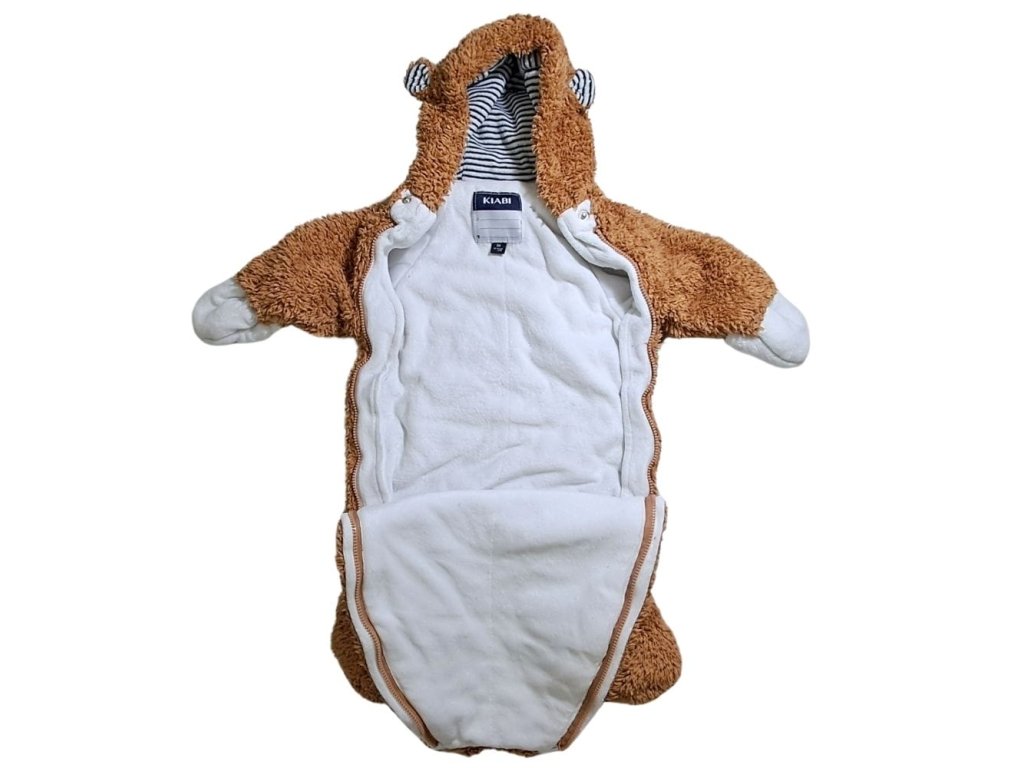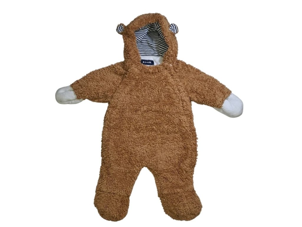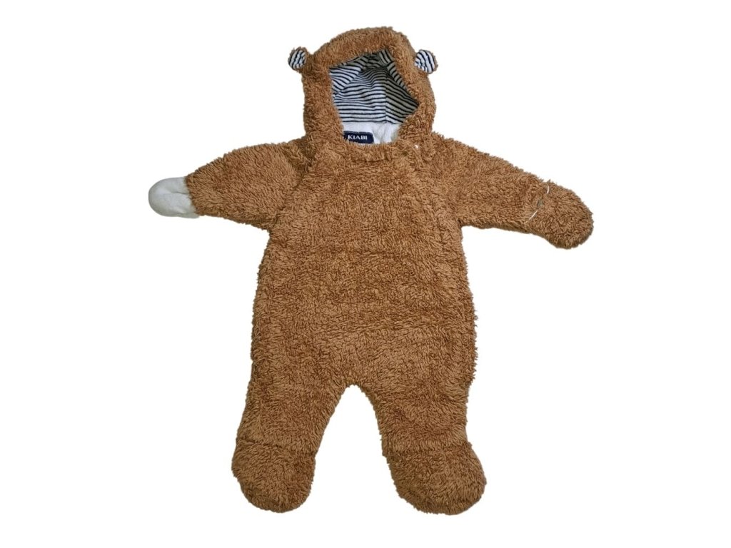 Barna, szőrmés, macis overál plüss béléssel, visszahajtható ujjakkal.