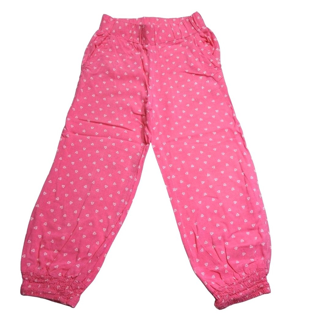 Pink, gumis derekú - és szárú lenge, nyári hosszúnadrág fehér szíves mintázattal.