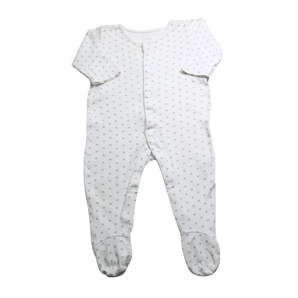 Fehér, hosszú ujjú pamut rugdalózó szürke csillagos mintázattal.
