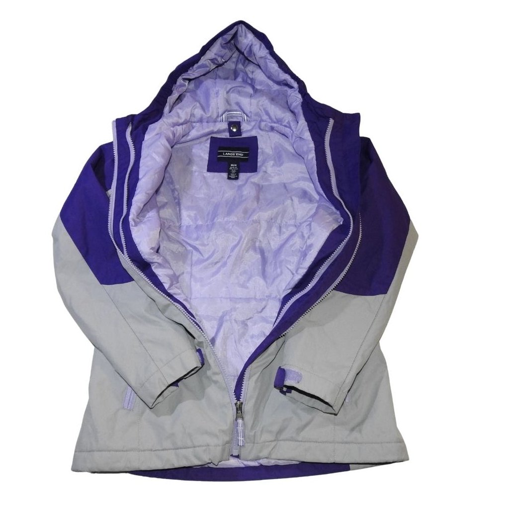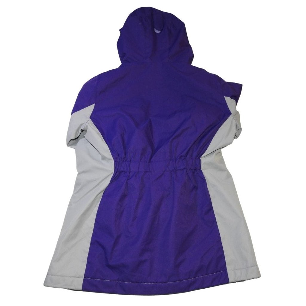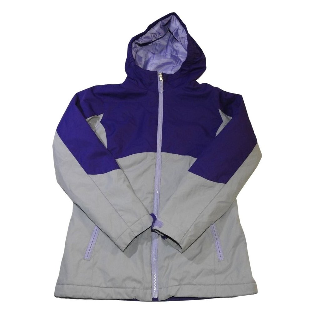 Lila színű, kapucnis, vízálló átmeneti kabát, dzseki, dupla cipzárral.