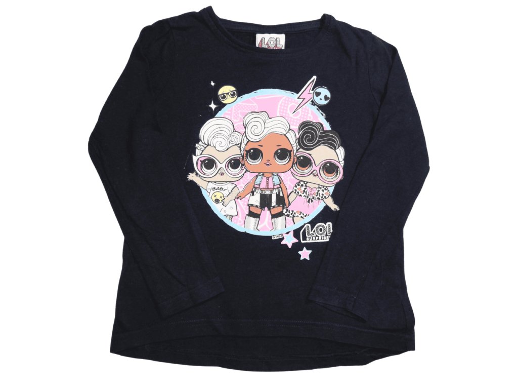 Sötétkék, hosszú ujjú pamut felső nyomott mintával.