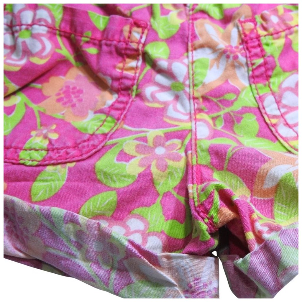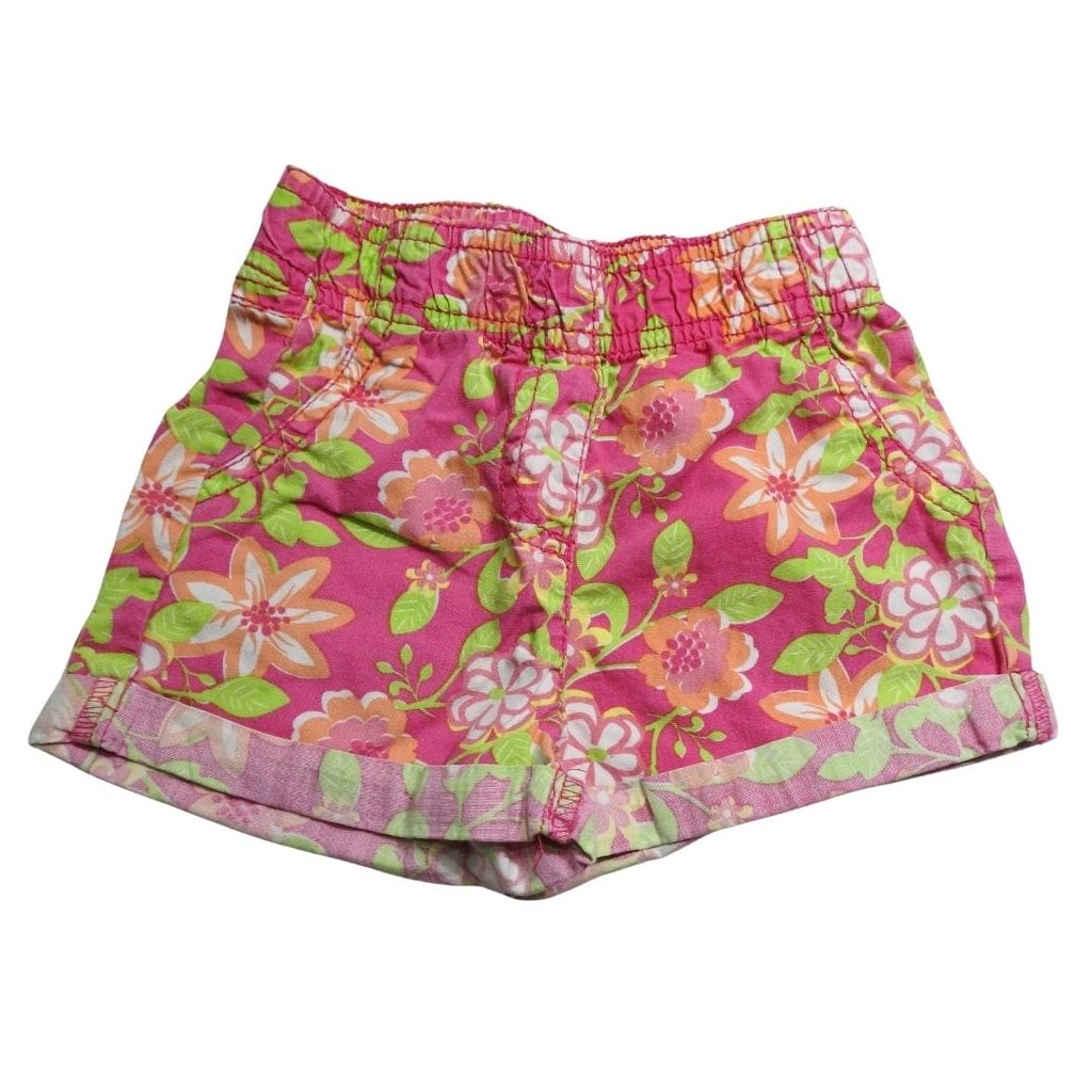 Pink, virágmintás gumis derekú pamut rövidnadrág.