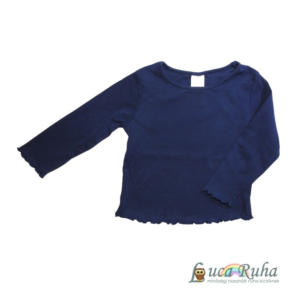 Sötétkék, hosszú ujjú pamut felső fodros szegéllyel.