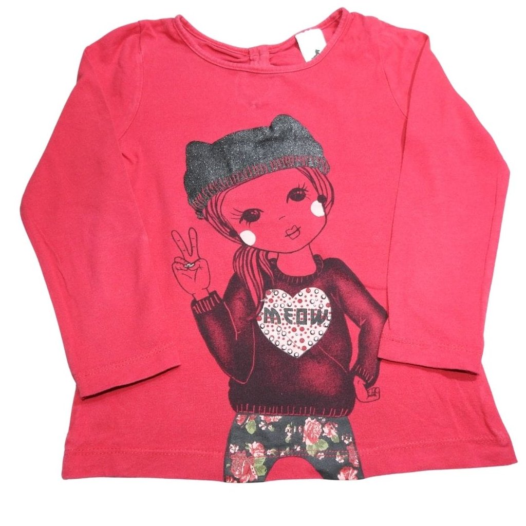 Pink, hosszú ujjú pamut felső kislányos, csillámos mintával.