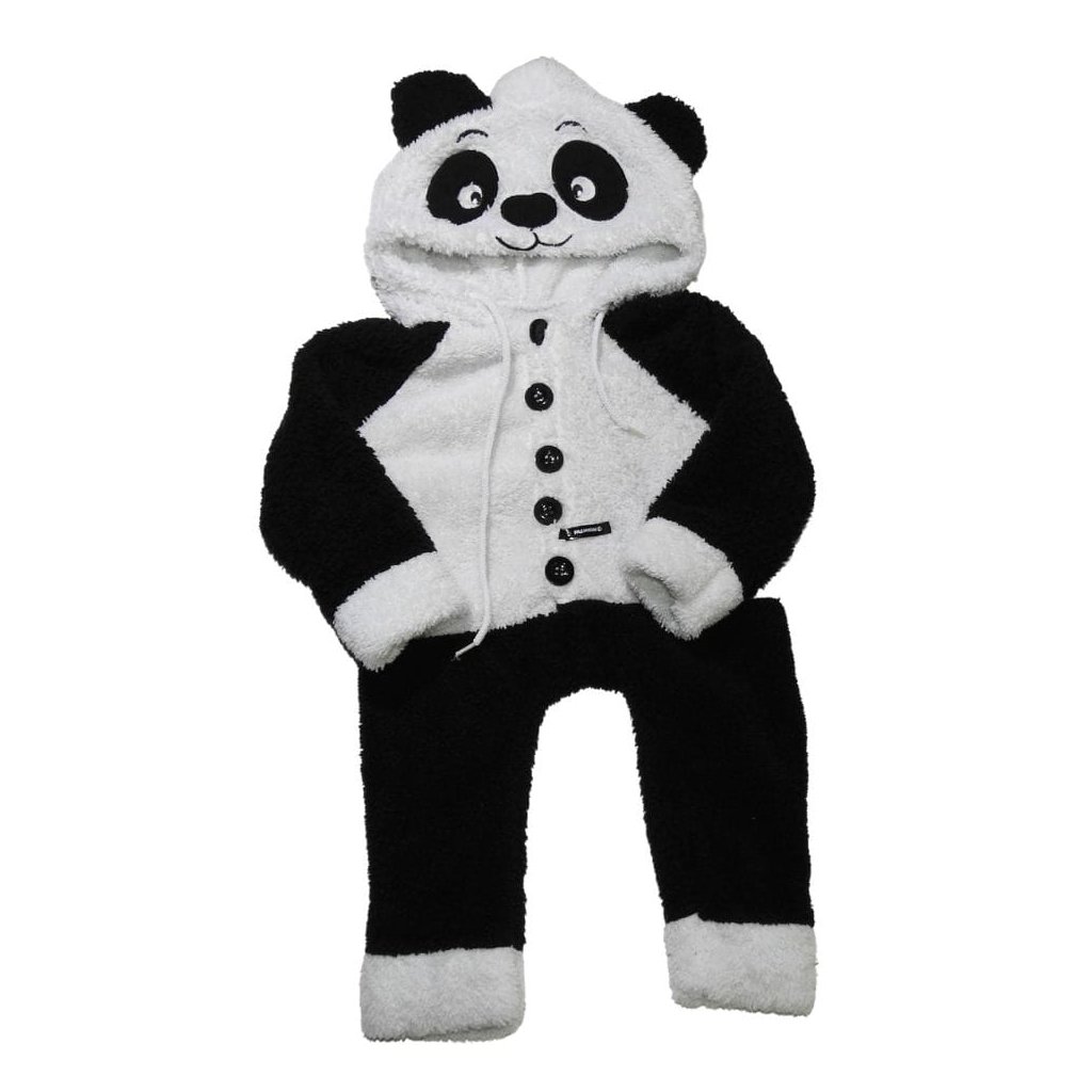 Fekete-fehér, panda mintás plüss, vékony overál.